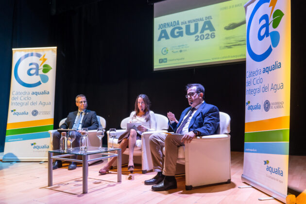 Bajo el lema «Almería, pasado, presente y futuro del agua», el bloque central de la jornada consistió en una mesa redonda moderada por Jose Colomina, co-director de la Cátedra Aqualia, en la que se debatieron políticas de planificación, sostenibilidad e infraestructuras estratégicas, así como la necesidad de adaptación al cambio climático y de colaboración interadministrativa.